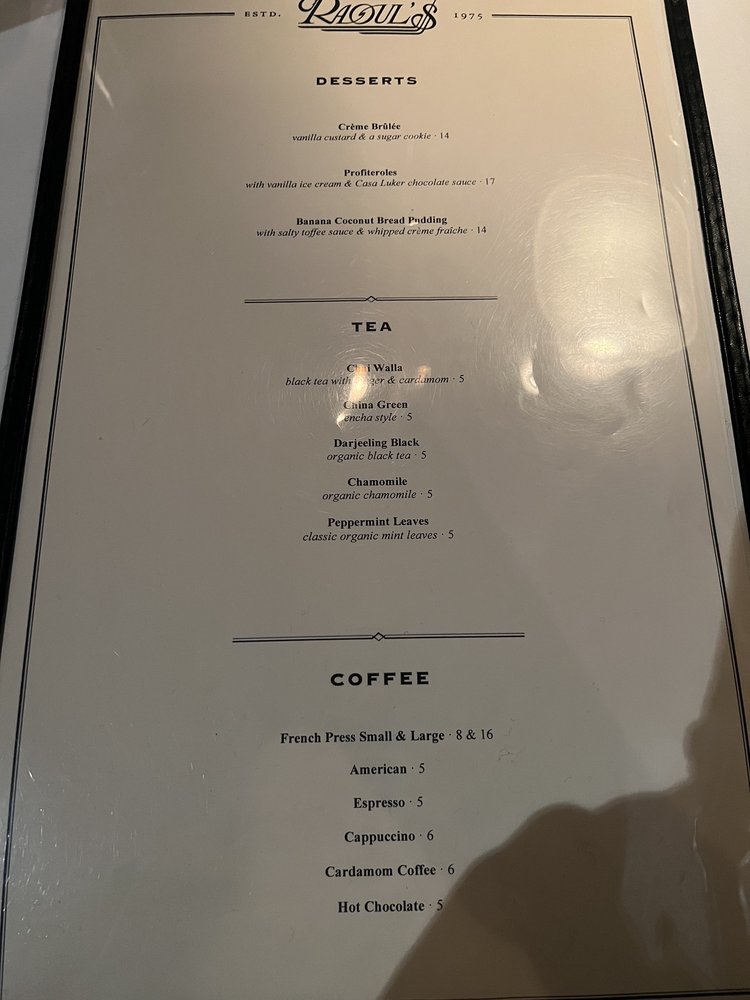 Welcome to Raoul's Restaurant, a French bistro nestled in the vibrant SoHo district of New York City. Here, the charm of a cozy yet lively ambiance meets an exceptional menu that promises a delightful culinary adventure. Begin your journey with their standout Pâté Maison and a refreshing Frisée salad, or dive into the renowned Steak au Poivre, perfectly cooked with a rich, savory sauce that has patrons raving.